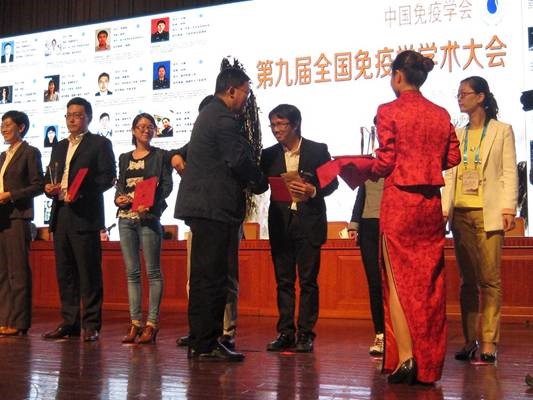 中国免疫学会青年学者奖是为了奖励在免疫学相关研究领域中具有突出表现的青年工作者,调动在国内工作的免疫学科研人员的积极性和创造性,繁荣和加速中国免疫学事业的发展,由中国免疫学会作为主办机构,特设立的“中国免疫学会学术奖”。每届原则上奖励不超过20人,本届获奖者来自全国多所高校和科研院所的18位青年学者,年龄在35岁以下,发表SCI论文影响因子在5分以上,多位论文发表在国际顶级杂志上。据悉在上一届中国免疫学会上,我校医学检验学院孙瑞利老师也获此殊荣,本届学会两位博士的再次获奖,表明我校医学检验学院已形成一支高水平免疫学学科青年人才队伍。