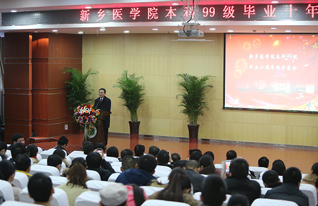 学校副校长郭志坤教授代表学校向重返母校的99级同学们致以诚挚的问候和良好的祝愿,并简要介绍了学校十年来发展建设所取得的辉煌成就。他希望各位校友在工作岗位上,积极为祖国的医疗卫生事业、教育、科研事业做出卓越贡献。真挚欢迎各位校友常回家看看,常回来走走,为母校的发展建言献策,母校永远是新医学子的坚实后盾和精神家园。