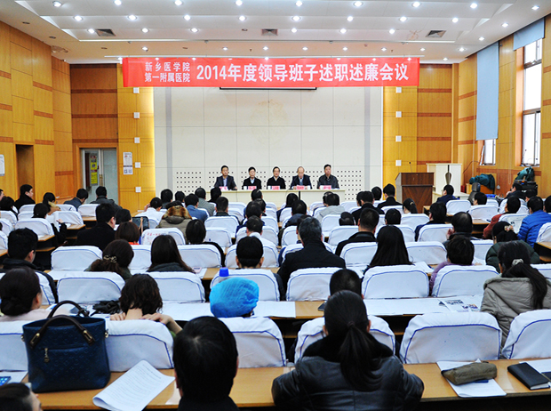 本网讯(文/宋鹏翀图/夏淼)1月14日下午,第一附属医院在该院内科楼三楼会议室召开2014年度领导班子述职述廉报告会。校党委副书记、纪委书记郑怀庆、副校长张新中出席报告会。第一附属医院领导班子全体成员、全院科级干部和护士长200余人参加了报告会。