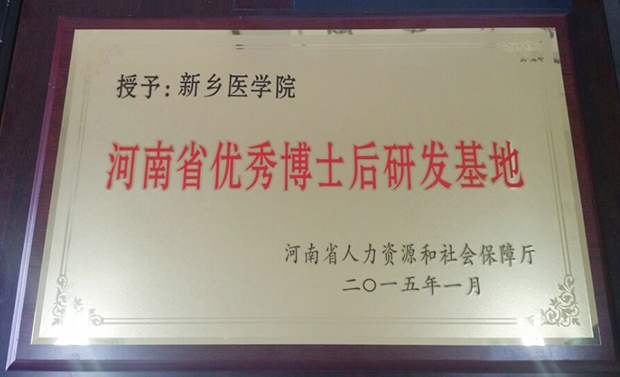 2010年我校被批准设立博士后研发基地,自设立研发基地以来,学校高度重视基地的建设和管理工作,专门成立了新乡医学院博士后管理委员会,出台了《新乡医学院博士后研发基地工作暂行管理办法》,先后与河南师范大学、郑州大学博士后流动站签订联合招收博士后协议,在平台建设、博士后招收和服务等方面做出了较好成绩,并在2014年全省博士后工作考评中获得优秀,被评为优秀博士后研发基地。