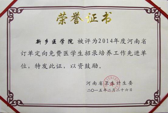 我校荣获河南省订单定向免费医学生招生培养工作先进单位称号