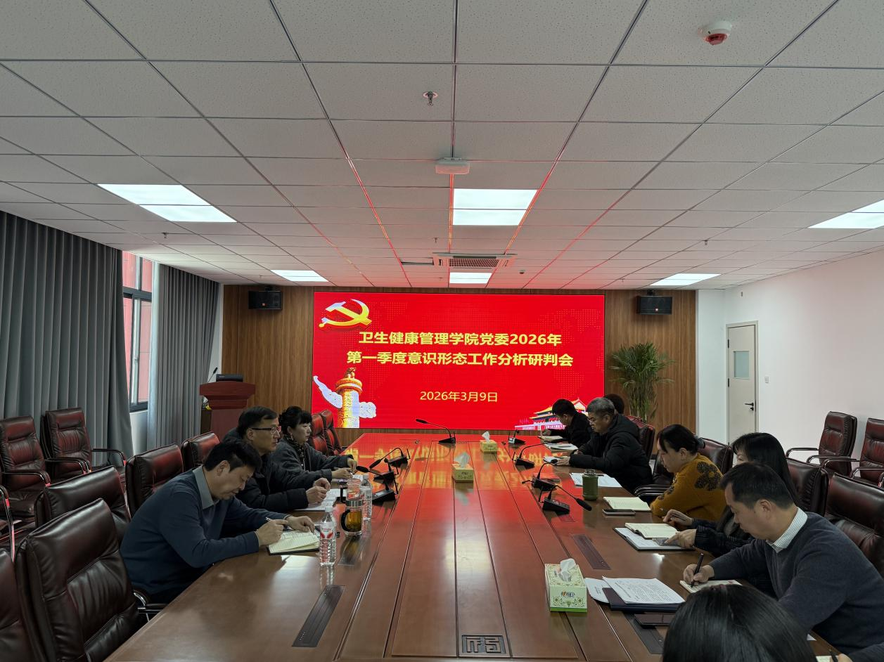 为深入贯彻落实上级关于意识形态工作的决策部署,进一步加强和改进学院意识形态工作,2026年3月9日,卫生健康管理学院党委在316会议室召开2026年第一季度意识形态工作分析研判会。会议由学院党委副书记高阳主持,学院党政班子成员、相关科室负责人及各党支部书记参加会议。