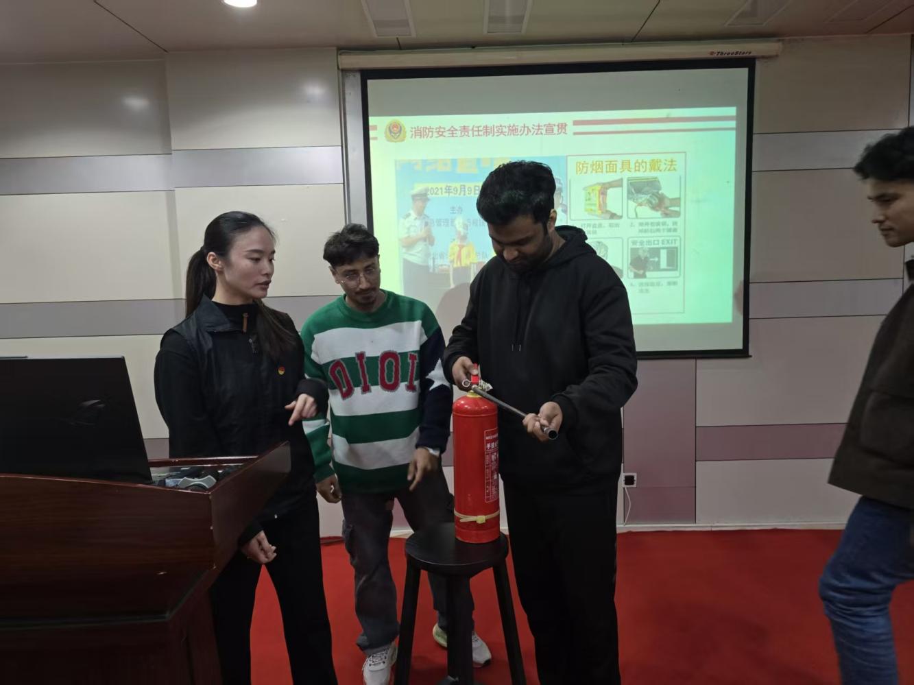 此次消防安全知识宣讲,内容丰富、形式多样,不仅提高了国际学生的安全防范意识,也增强了他们的应急处置能力,为构建平安校园奠定了坚实基础。