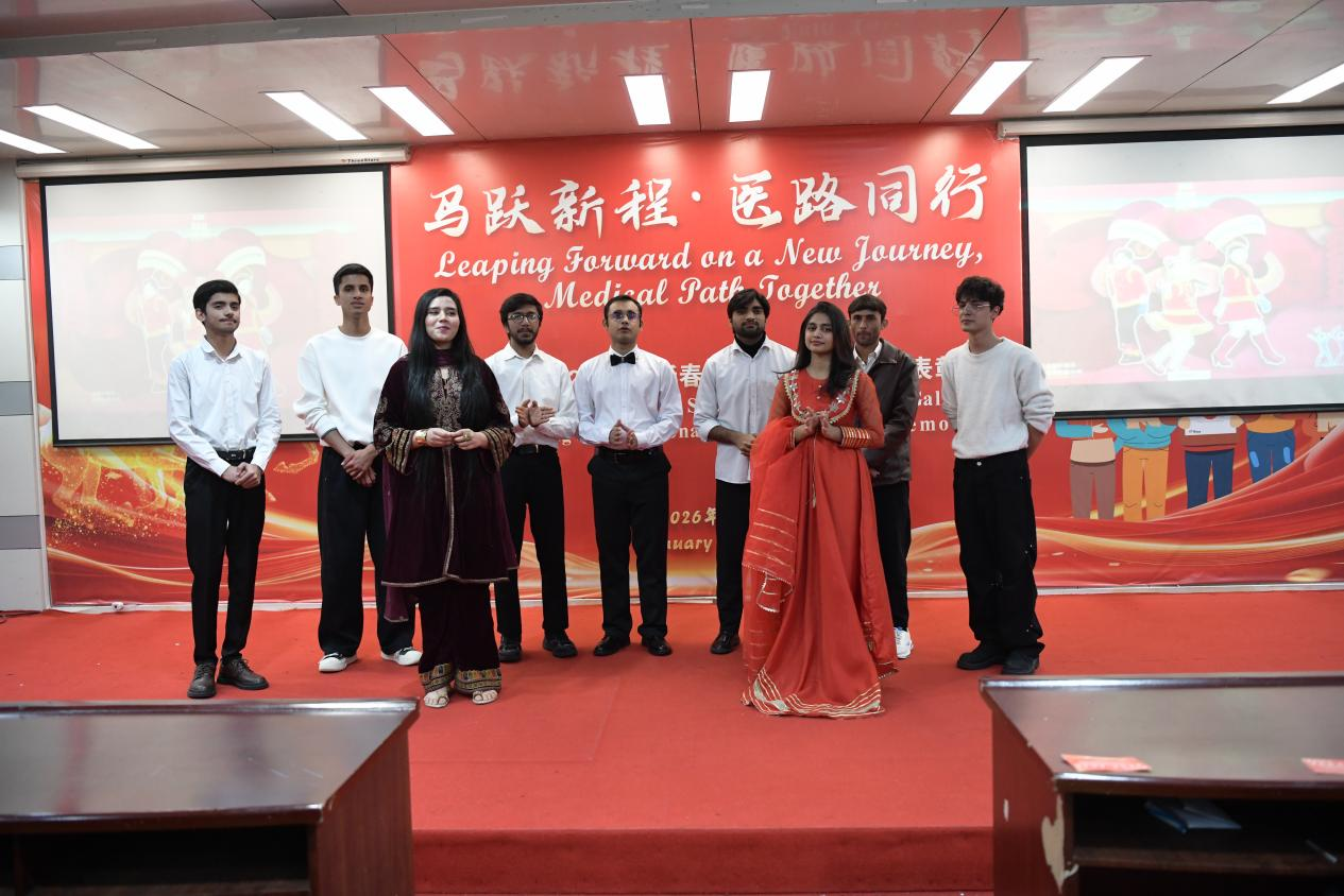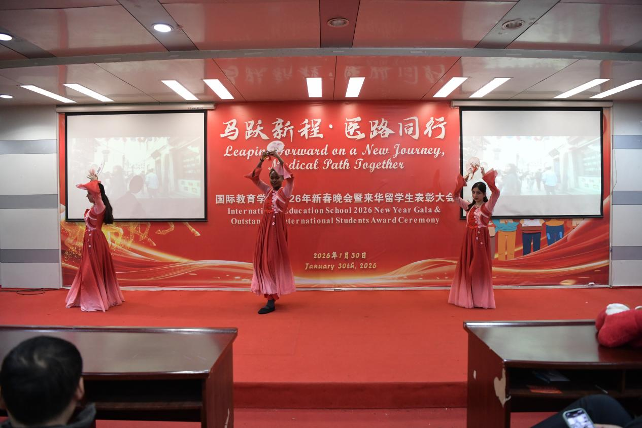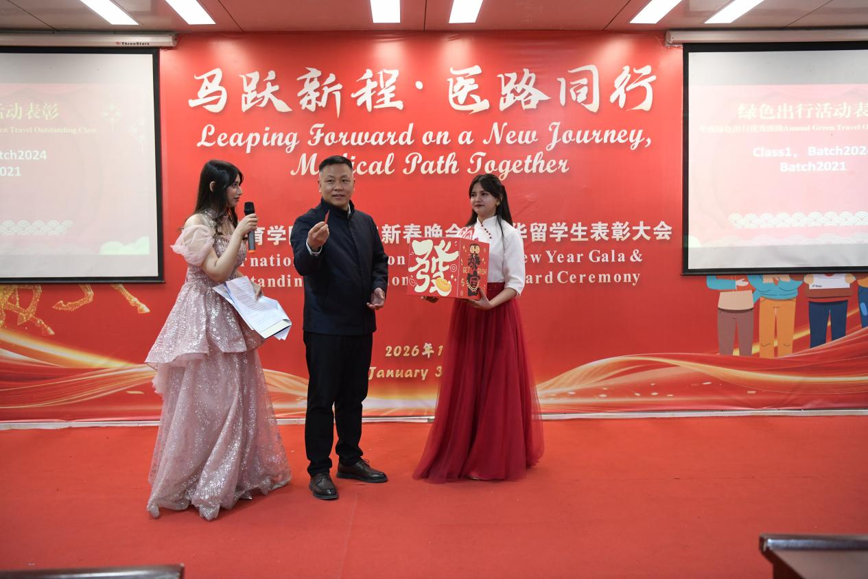 2026年1月30日,我院举办“马跃新程,医路同行”国际学生春节联欢晚会暨年度表彰大会。学院领导、教职工与全体国际学生欢聚一堂,共庆新春。