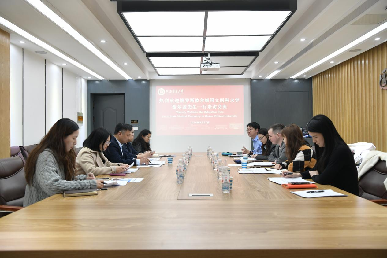 3月10日,俄罗斯彼尔姆国立医科大学校长对华事务助理谢尔盖・弗拉基米罗维奇・穆拉维约夫一行到访我校。我院院长袁磊及相关科室负责人参加座谈交流。