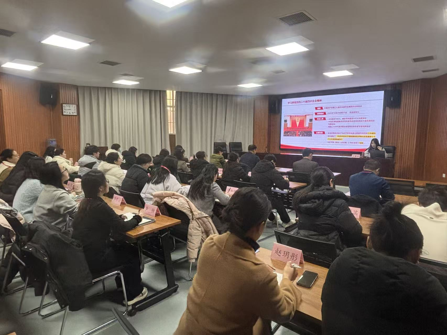 本次培训以“学习贯彻党的二十届四中全会精神,奋力开创中国式现代化建设新局面”为核心主题,旨在引导师生党员深刻领会全会精神的核心要义与实践要求,夯实政治根基,拓展事业视野。培训采取专题教学的方式,邀请市委党校专家进行深度解读。