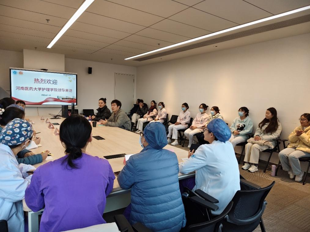 为扎实推进校院协同育人工作,精准掌握护理专业实习生临床实践进展与成长状况,进一步完善实习管理体系,2026年1月22日,河南医药大学护理学院赵玥彤、黄垒赴浙江大学医学院附属第一医院,与医院护理部负责人、教育护士、科室护士长及护理带教老师开展专项座谈,同时与在岗实习学生亲切互动,筑牢实习阶段育人根基。