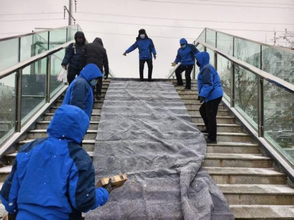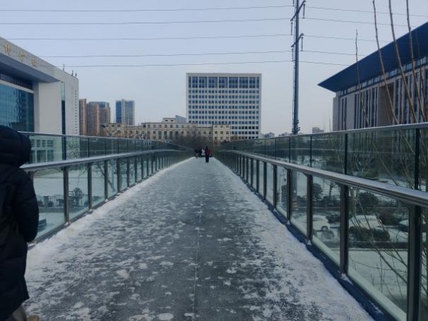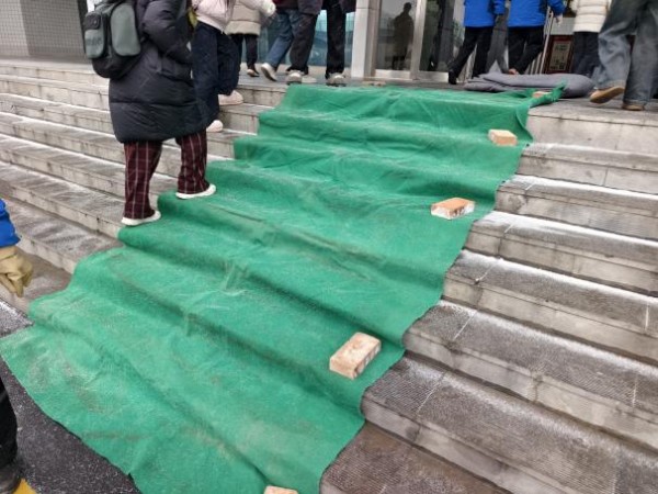 雪情即命令,行动显担当。早在降雪来临前,1月19日,后勤保障部提前在各教学楼、办公楼等主要楼宇的台阶、坡道铺设防滑地毯,并在易滑区域设置醒目警示标识,提前排查风险,筑牢第一道安全防线。