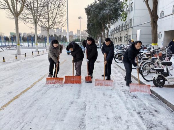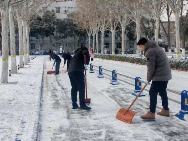 近日,我市迎来大范围降雪。为保障师生安全出行、维护校园正常秩序,后勤保障部第一时间启动雨雪天气应急预案,高效组织清雪除冰与防滑保障工作,以实际行动守护校园平安。