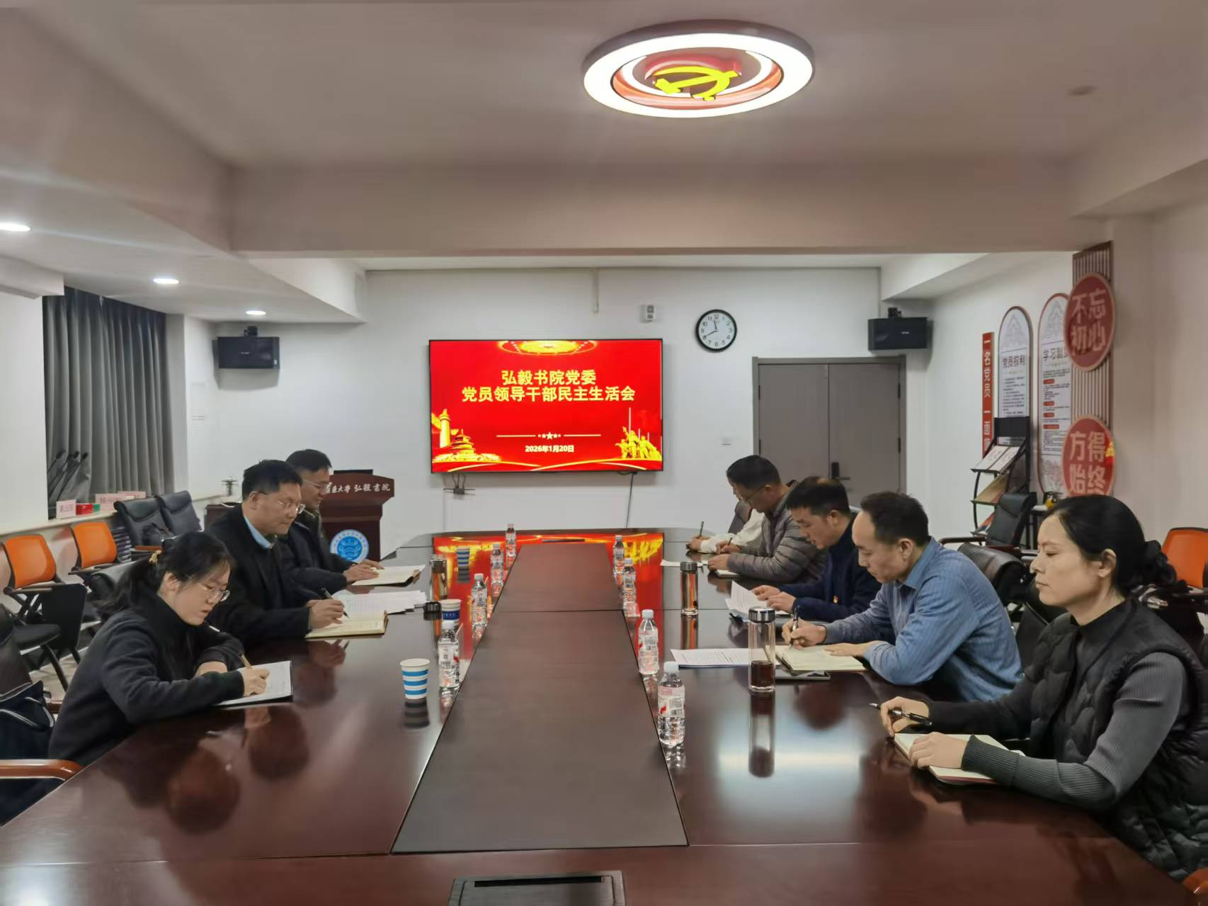 1月20日上午,弘毅书院党委在书院党建活动室召开2025年度党员领导干部民主生活会。校党委常委、副校长于毅,校民主生活会第六督导组组长、校纪委(监察专员办公室)第三纪检监察室主任徐超,党委组织部干部监督与档案管理科科长王红云到会指导,书院领导班子成员参加会议,会议由弘毅书院党委副书记李强主持。