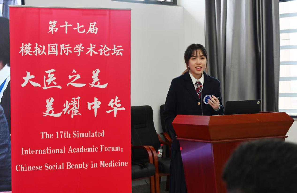 近日,由复旦大学外国语言文学学院与福建省外国语文学会联合主办,福建医科大学等单位承办的第十七届模拟国际学术论坛决赛圆满结束。我校峻极书院2023级菁英医师班学生杨怡涵,在外语学院教师雍文明、石帅的共同指导下,历经多轮选拔,最终凭借扎实的专业基础、严谨的学术思维与出色的英语表达能力,在竞争激烈的oral presentation环节中脱颖而出,荣获特等奖。