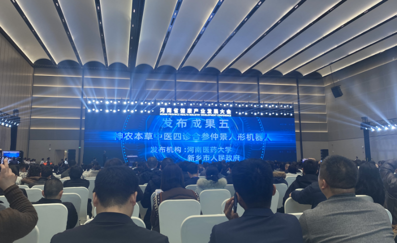 在河南省卫健委的大力支持下,我校联合新乡市人民政府,积极融入河南省健康产业战略并主动对接需求成果突破。我校党委书记任文杰教授牵头研发的“神农本草中医四诊合参仲景人形机器人”在本次大会现场成功发布。