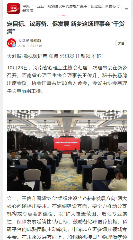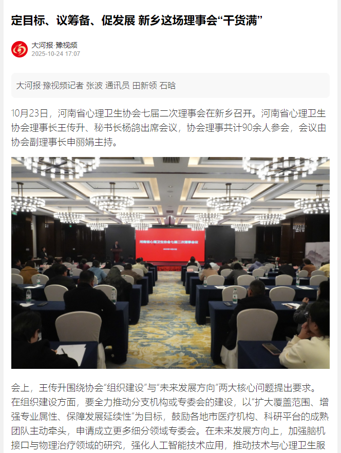 会议期间同步召开河南省心理卫生协会七届二次理事会。