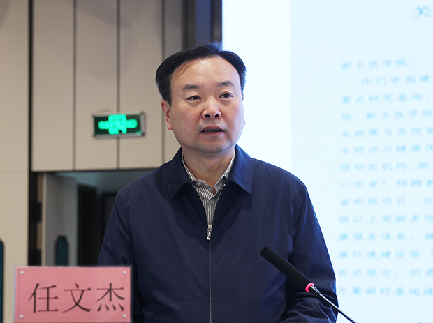 10月17日上午,我校举办健康中原建设与发展学术研讨会暨健康中原研究院学术委员会成立仪式。河南省卫健委规划发展处处长赵丽娟,武汉大学政治与公共管理学院张亮教授,清华大学医院管理研究院院长高级顾问刘庭芳教授,复旦大学公共卫生学院副院长陈英耀教授,国家卫生健康委医院管理研究所医疗政策部主任董四平教授,郑州大学公共卫生学院副院长吴建教授;我校校长任文杰教授,党委委员、副校长王辉教授出席会议。国家卫生健康委统计信息中心党委副书记代涛教授以视频形式参会。相关单位负责人及师生代表参加会议。