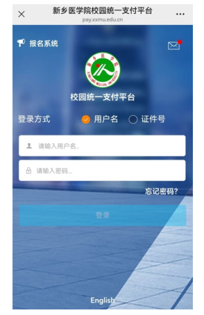 方式二: 手机端:微信搜索关注“新乡医学院财务与资产管理部”公众号,选择“学生缴费”进入校园统一支付平台界面。