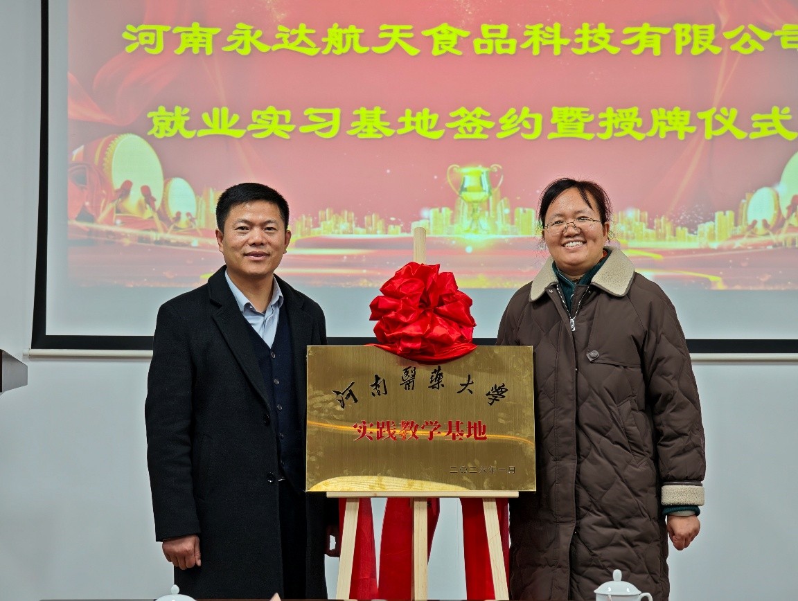 为深化产教融合、推动协同育人,切实提升生物工程专业学生实践应用能力,扎实推进访企拓岗促就业专项工作,2026年1月7日,生命科学技术学院副院长周晨妍率生物工程系教师代表及2022级生物工程专业48名学生,赴河南永达航天食品科技有限公司开展实践教学交流,并举行“实践教学基地”签约揭牌仪式。河南永达航天食品科技有限公司董事长郑远东及相关部门负责人出席活动。