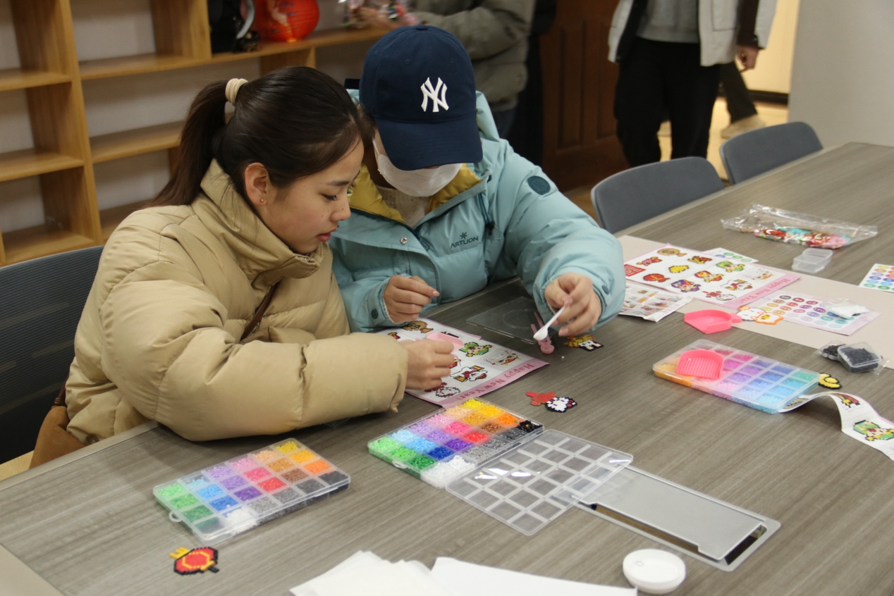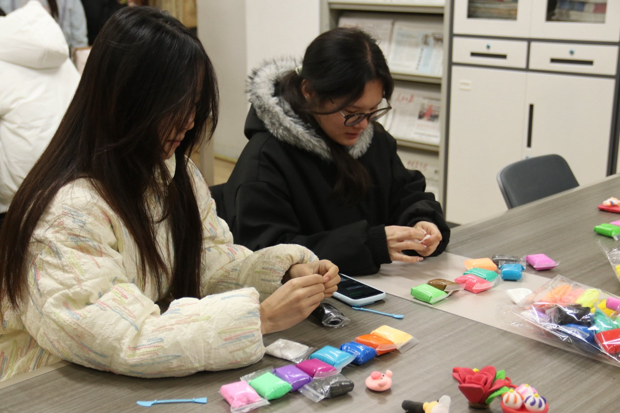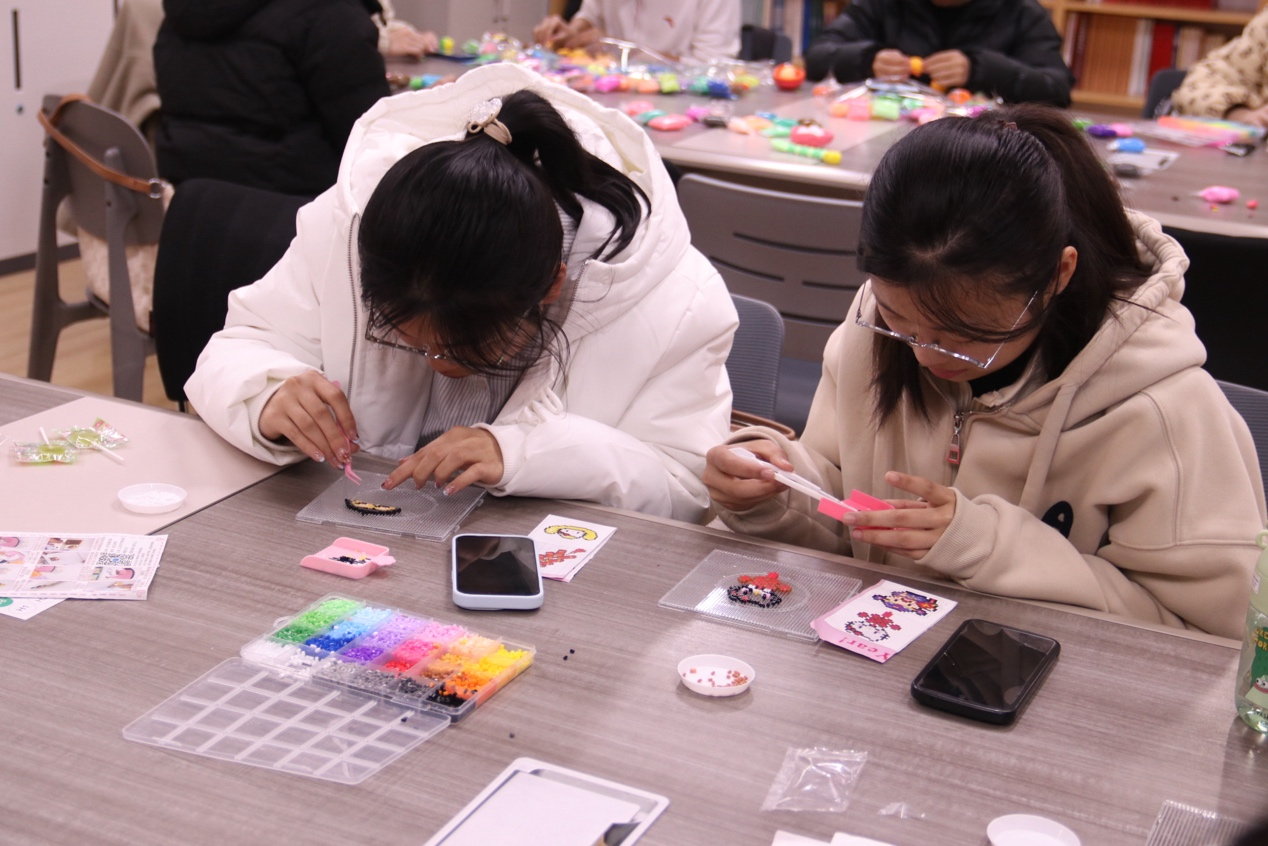 阅览室化身为“巧手坊”,DIY黏土汤圆和拼豆体验吸引了众多同学驻足。大家将彩色黏土揉捏成圆润可爱的“汤圆”,或在拼豆板上拼出骏马、汤圆等图案。指尖流转间,团圆的寓意和新学期“马到成功”的祝福被一一定格。