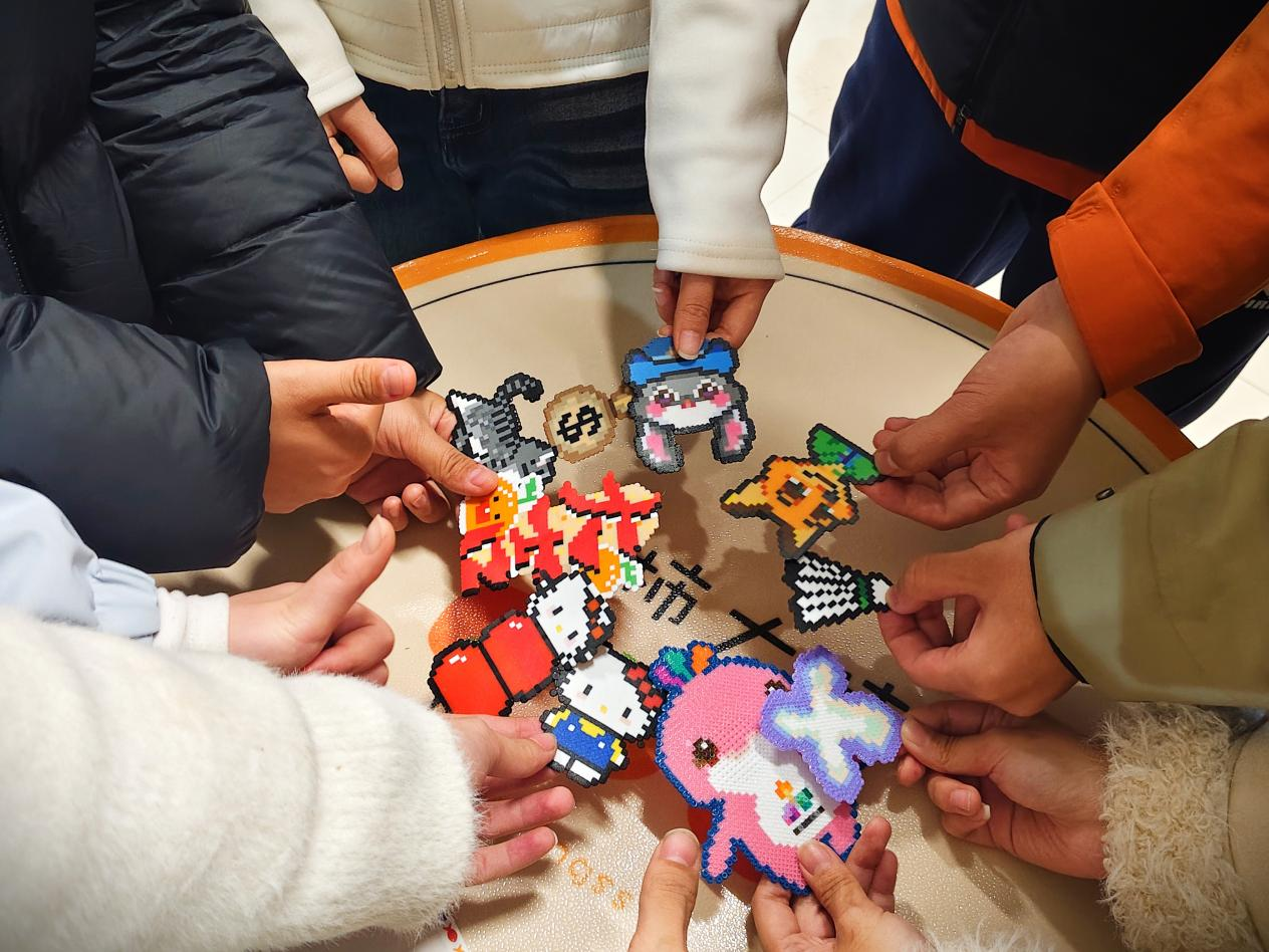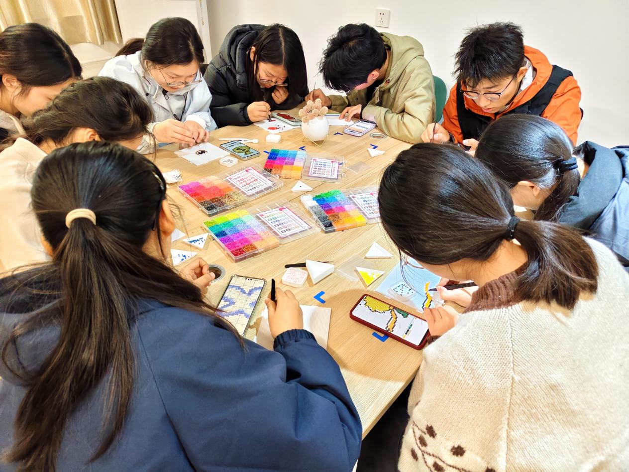“原本只是想来凑个热闹,没想到和舍友一起拼豆的时候,突然发现我们的默契比想象中多!”一名同学举着刚完成的宿舍钥匙扣,挂件上的“四人小手掌”图案正是她们的创意。现场志愿者表示,活动特意设置“集体+单人”双模式,既鼓励朋辈间的交流协作,也尊重个体的创作节奏,让不同性格的同学都能找到归属感。
