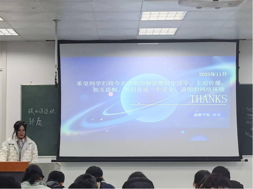 11月25日,河南医药大学麻醉学院“网安护航,思政协力新篇”网络安全思政教育主题会议在新乡校区第二教学楼举办。