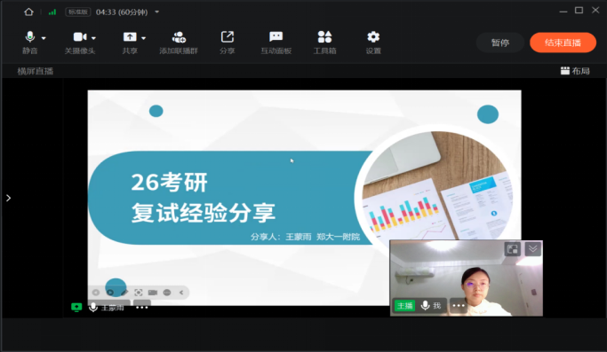 分享过程中,学子们认真聆听、积极记录,线上互动区不时有学子提问交流,四位代表耐心解答,将自身备考与应试的宝贵经验毫无保留地传递给学弟学妹,为大家的复试备考之路点亮了明灯。参会学子纷纷表示,此次分享会内容实用,不仅明晰了复试备考的重点与方向,掌握了诸多实用的面试技巧,更缓解了复试焦虑,增强了从容应对复试的信心。