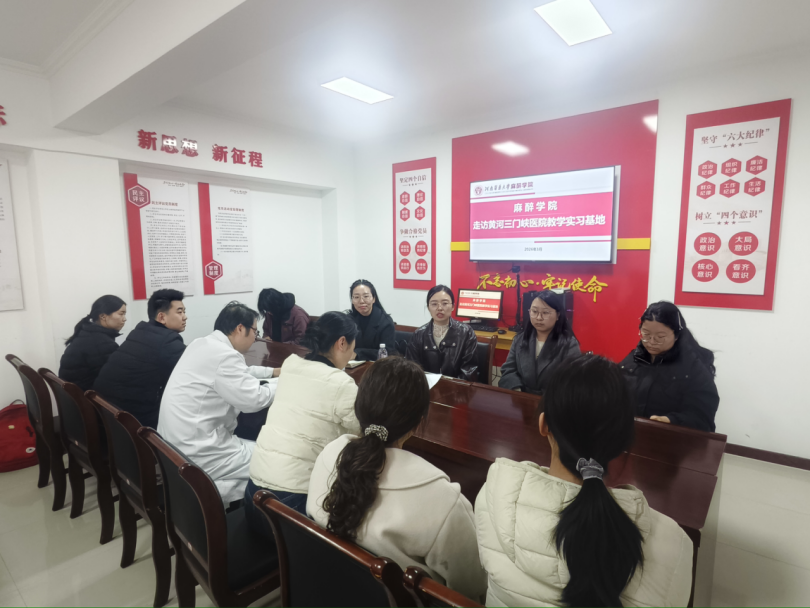 在三门峡市中心医院,刘慧仿老师与医院教务科杨主任、麻醉科赵主任齐聚一堂,与实习学子围坐座谈,一场双向奔赴的交流就此展开。