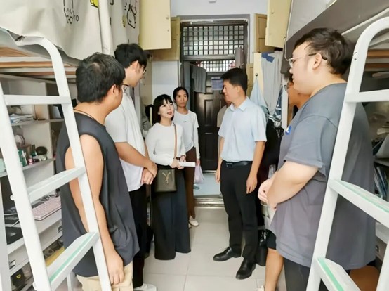 本网讯(图文/王子鸣)为进一步了解2025级新生入学适应情况及高年级学生日常生活情况,营造温馨融洽的校园生活氛围,9月5日,我院党委组织部副部长、学院党委负责人齐明超同志,辅导员葛雪晗,班主任王华阁、张慧丽一行,深入新生宿舍以及高年级宿舍开展走访慰问活动,为同学们送上学院的殷切关怀与暖心问候。