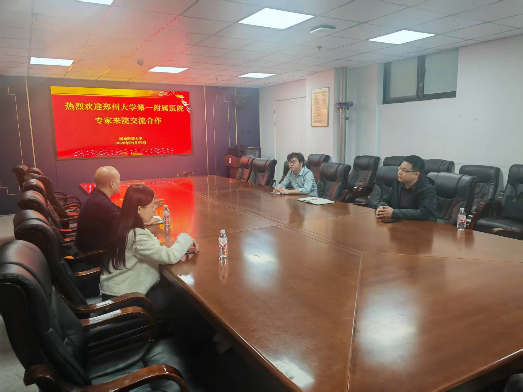 本网讯(图文/赵宗亚)4月9日,郑州大学第一附属医院介入科任克伟、李宗明教授一行到我院进行访问交流,我院执行院长任武、医学工程学院执行院长何广杰、研究生与科研管理办公室代主任王昌及智能医学工程专业教师金珍博士参加座谈。
