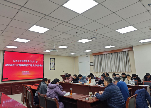 副院长张晨光领学了习近平总书记关于树立和践行正确政绩观的重要论述。逐项传达学习中央、省委及全省教育系统关于开展树立和践行正确政绩观学习教育的系列会议精神。刘荣勋全面解读学校党委学习教育部署要求,明确了学习教育的目标任务、方法路径、时间节点和工作要求。会议强调,开展树立和践行正确政绩观学习教育,是今年学院党的建设的重要政治任务,更是推动公共卫生教育事业高质量发展的必然要求。全院各级党组织要切实提高政治站位,深刻认识学习教育的重大意义,把思想和行动统一到上级及学校党委决策部署上来,健全学习、检视、整改、提升闭环管理机制,推动党建工作与学科建设、人才培养、科研创新、社会服务等中心工作深度融合,切实把政治优势、组织优势转化为学院发展优势。