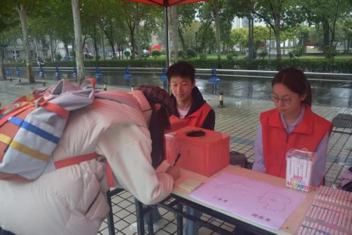 10月2日线下“给祖国妈妈的悄悄话”展板活动更显热闹。红色主题展板前,同学们领取便利贴与马克笔,写下“愿以白衣护家国,祝祖国安康”“医路前行,不负韶华,不负祖国”等专属寄语。完成后还能领取小奖品,现场笑声与祝福声交织,成为五环广场最动人的风景。