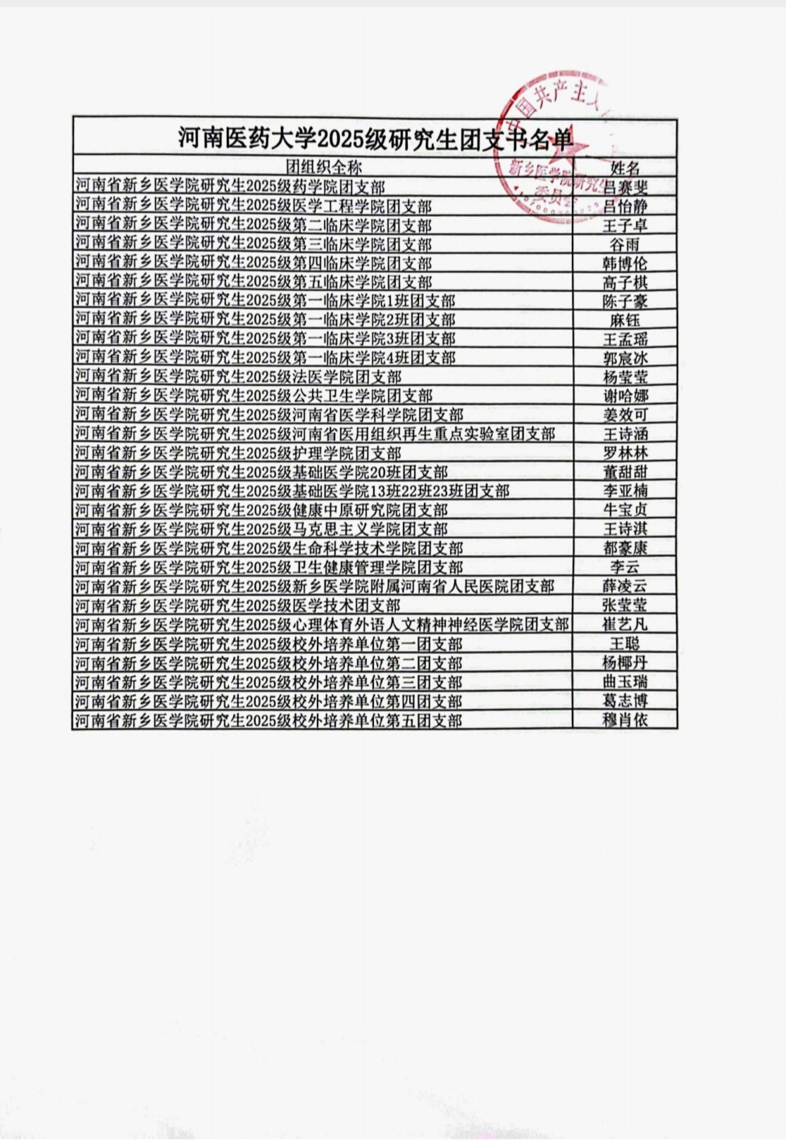 2025-2026学年河南医药大学研究生干部(临床专硕)名单公示