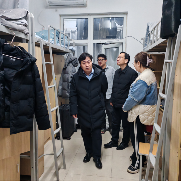 会后,王天云带队深入学生宿舍走访调研,倾听学生心声,传递学校关怀。走访过程中,王天云与同学们亲切交流,详细询问科研进展、新学期规划及生活需求,勉励大家要树立远大目标,潜心治学、勇于创新。同时,他特别叮嘱学生要增强安全防范意识,严格遵守宿舍管理规定,注意用电安全与人身安全,共同营造安全、文明、温馨的生活环境。