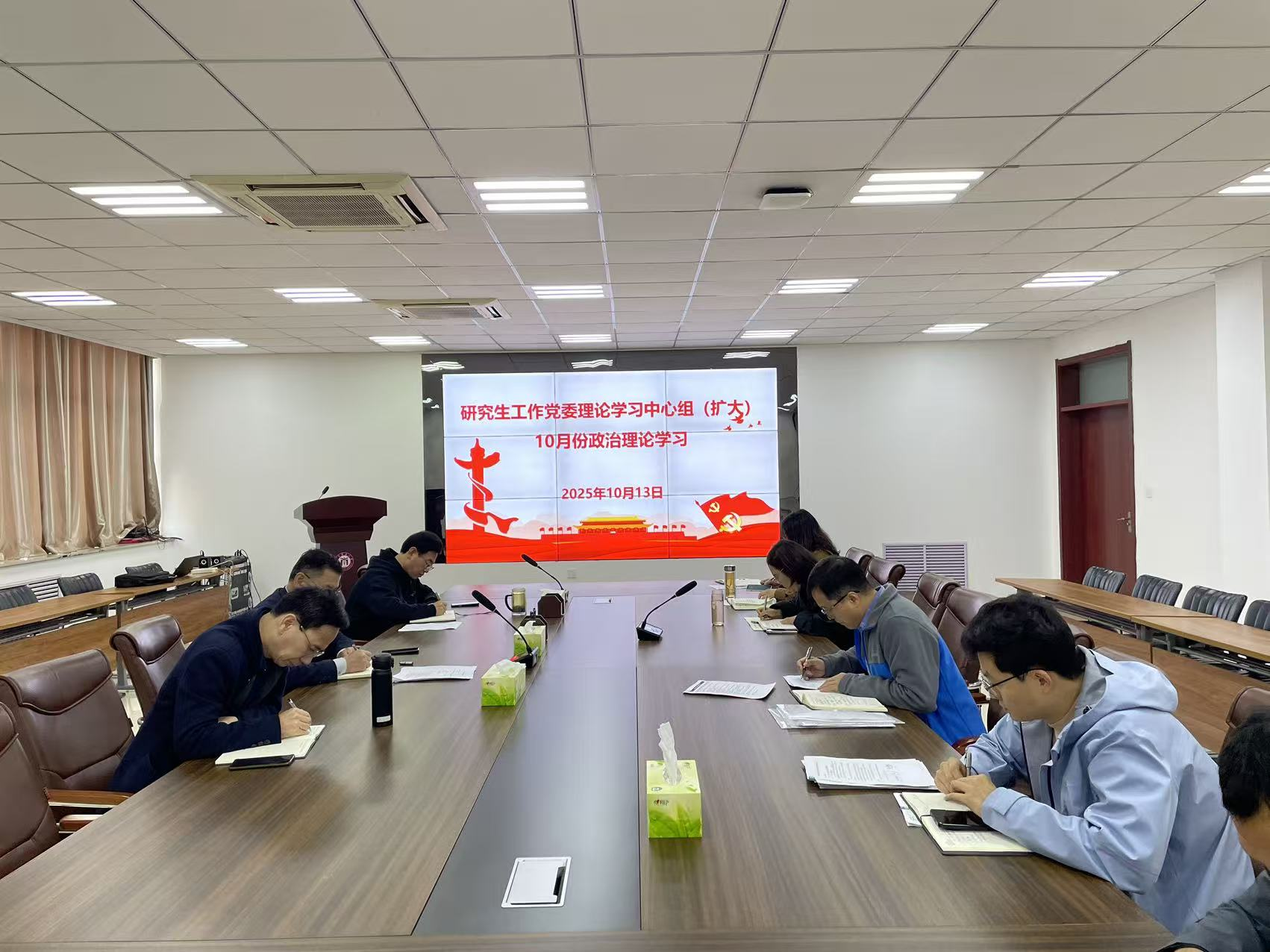 在新时代的征途上,我校将深化政治理论学习与落实“立德树人”根本任务紧密结合,着力推动党的创新理论内化于心、外化于行。10月13日,研究生工作党委组织召开党委理论学习中心组(扩大)会议,党委班子成员与各科室党员同志积极参与了学习。