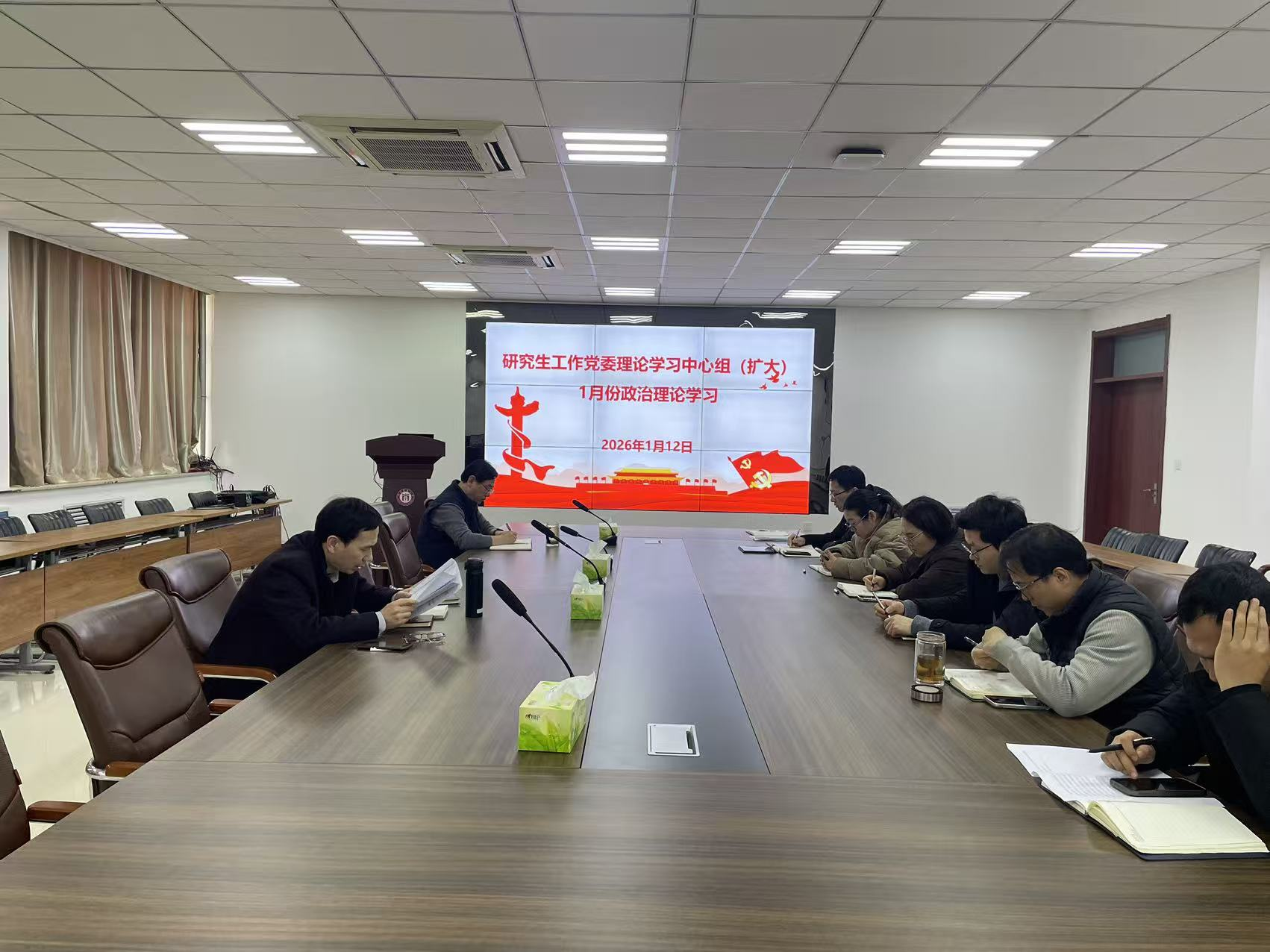 为深入贯彻全面从严治党战略方针,持续深化政治理论武装,凝聚奋进力量,持续推进研究生工作党委理论学习中心组规范化、制度化建设,切实筑牢全面从严治党思想根基,提升党员干部政治素养和履职能力,1月12日,研究生工作党委组织召开党委理论学习中心组(扩大)会议,党委班子成员与各科室党员同志积极参与了学习。