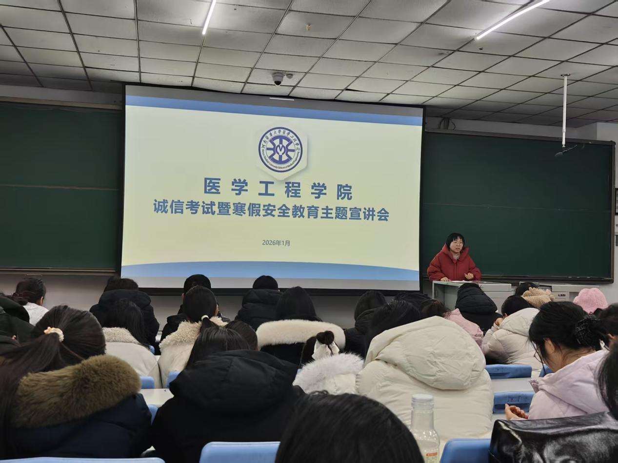为严肃考风考纪,增强学生安全防范意识,1月14日上午,医学工程学院在博学楼3101教室召开诚信考试暨寒假安全教育主题宣讲会。学院团委书记陈洪涛,辅导员范亚桢出席会议,学院全体学生参会。