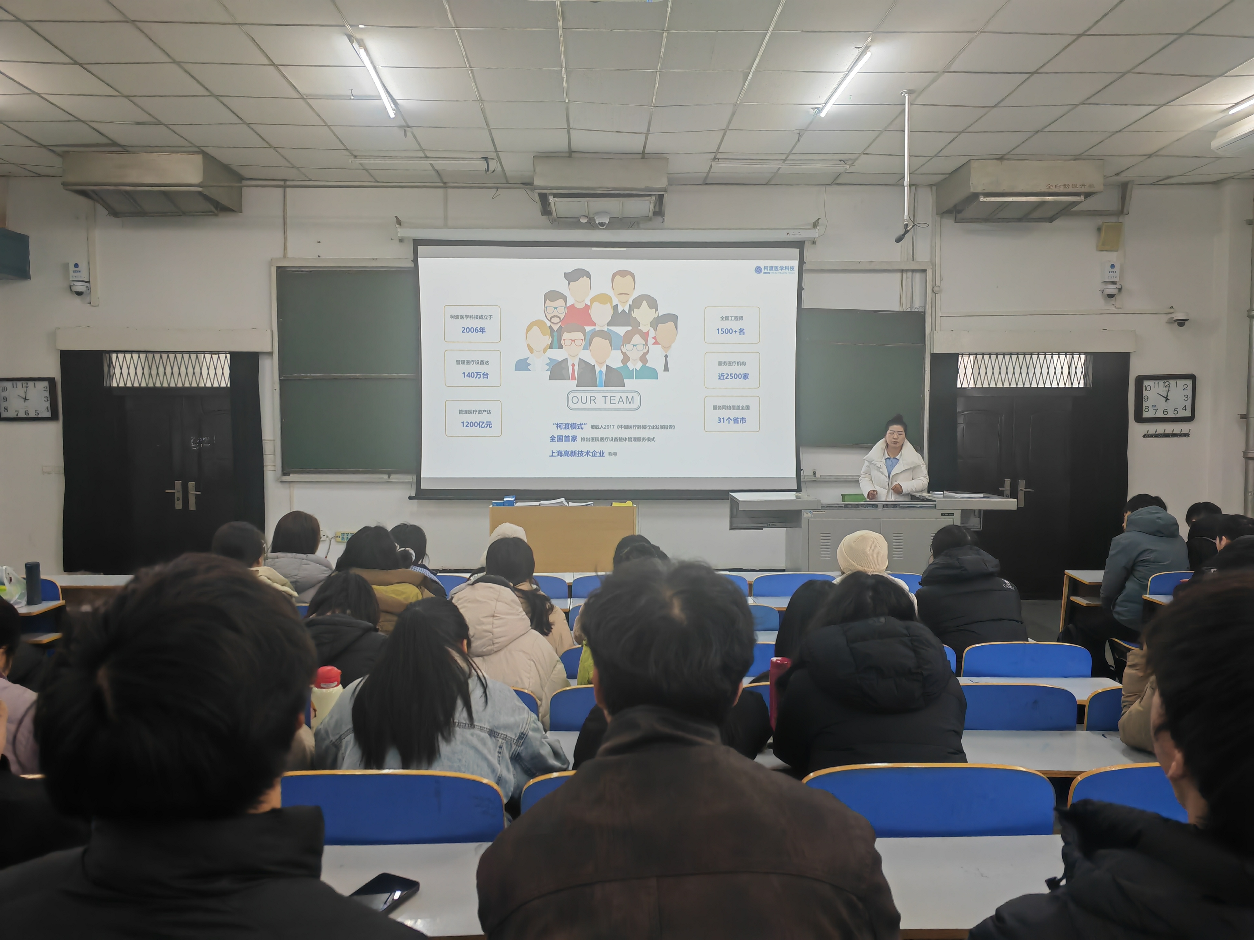 宣讲会上,柯渡医学HRBP张慧慧以“医疗设备管理的新纪元与职业机遇”为切入点,向在场学子详细介绍了柯渡医学科技的企业文化、发展历程及行业地位。作为国内领先的医学装备管理服务企业,柯渡医学科技的业务范围覆盖设备全生命周期管理,其创新的服务模式引发了在场学生的浓厚兴趣。接着她重点解读了本次的招聘岗位、晋升发展及薪酬福利。她结合医学工程学院的专业特色,深入剖析了医疗设备管理、技术支持、项目管理等岗位所需的专业技能与核心素养。她强调,柯渡医学科技不仅看重学生的专业基础,更重视其学习能力、服务意识及团队协作精神。