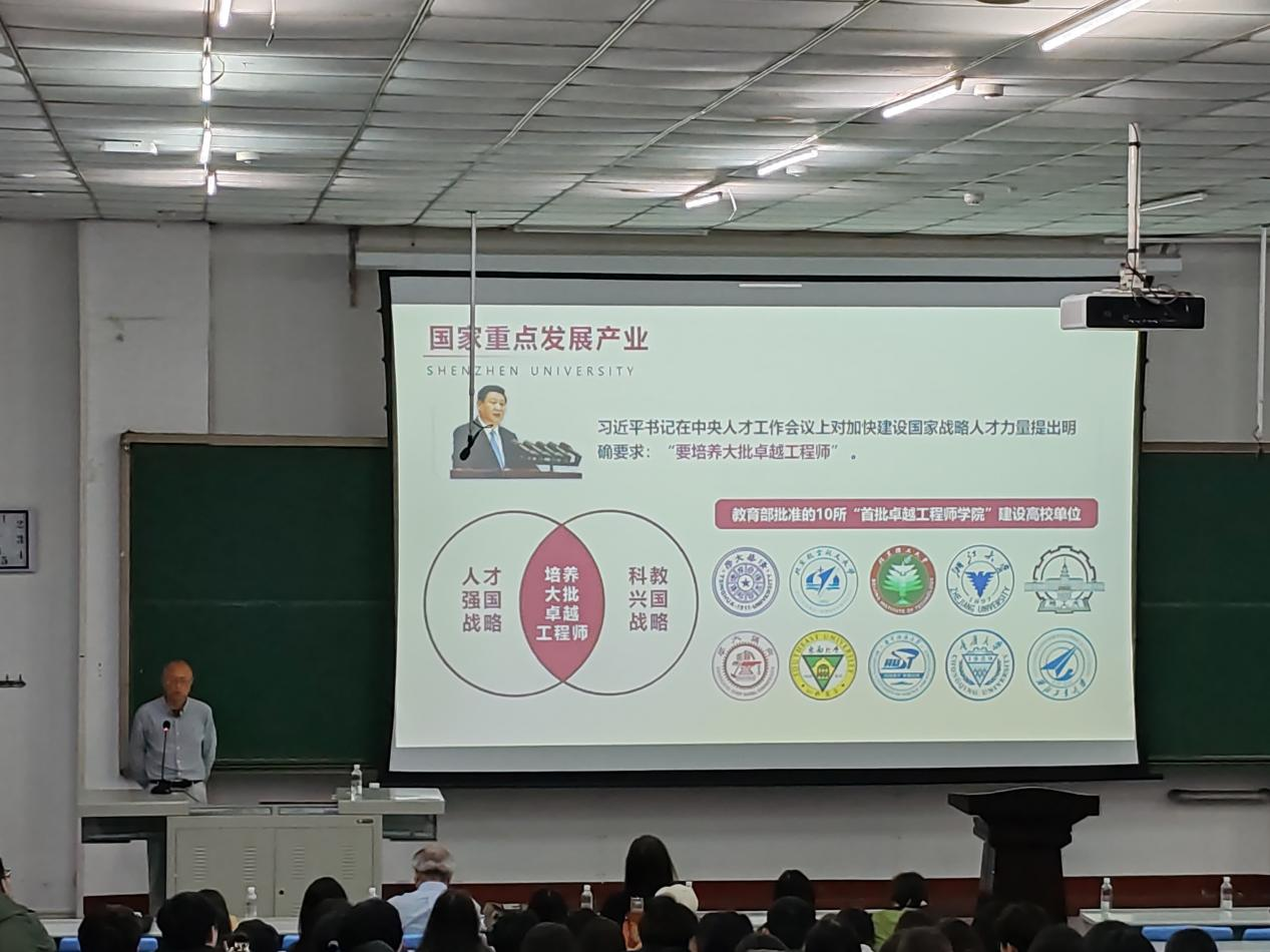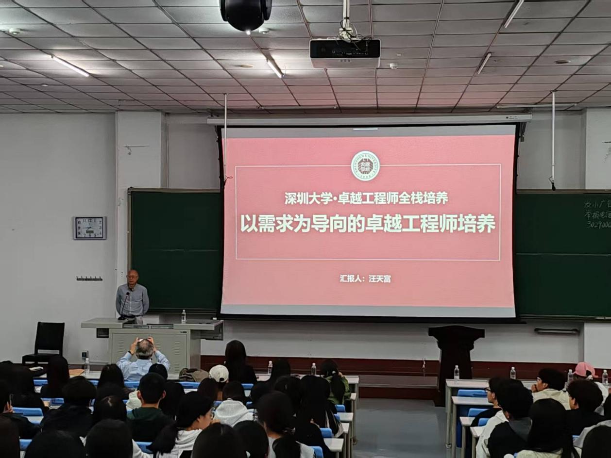随后,汪天富教授聚焦“以需求为导向的卓越工程师培养”的主题,分享了深圳大学在卓越工程师全栈培养方面的理念与实践。他系统介绍了以产业需求为核心,在课程项目化、科研实战化及创新育人平台建设方面的扎实举措与显著成果,为同学们勾勒出一条清晰的成长路径。、