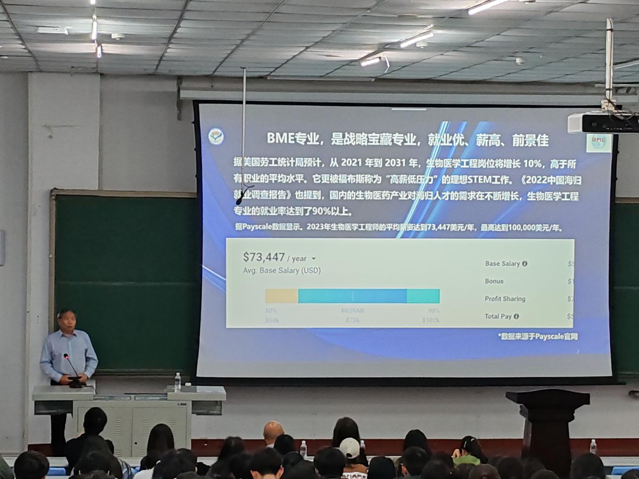 为帮助同学们明晰专业前景、把握成长方向、了解科创实践平台,4月22日晚,我院联合数理医学院、弘毅书院在三教D2教室顺利举办“笃学力行,奋进成才”学风建设系列活动之专家讲坛。医学工程学院、数理医学院党政领导班子、团委书记及辅导员出席会议,三院师生代表参会。报告会特邀教育部高等学校生物医学工程类专业教指委前主任委员东南大学万遂人教授,深圳大学生物医学工程学院创院院长、深圳市生物医学工程学会理事长汪天富教授和深圳大学医学创新成果转化中心/生物医学工程教学实验中心副主任董磊教授。会议由医学工程学院辅导员范亚桢主持。