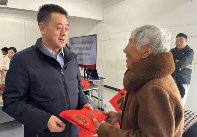 2026年2月4日,学校党委副书记路红显带队,学院书记孔磊、院长李新国一行赴学校定点帮扶村——原阳县官厂镇新厂村,开展“送福下乡”迎新春文化惠民活动。