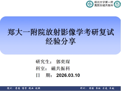 3月10日晚19点,考研复试经验线上交流会如期开讲,为学子搭建起专属的“研途答疑平台”。本次交流会特邀复旦大学感染影像与人工智能学硕卢宁、郑州大学磁共振专硕郭奕琛、广东省人民医院放射专硕沈婧雯、南京大学外科学(肝胆和乳腺方向)学硕裴少龙等四位往届优秀上岸学子。他们结合自身报考院校特色、真实复试经历及调剂经验,直击不同院校医学影像学专业复试的核心考点,为学子带来极具实操性的备考指南。