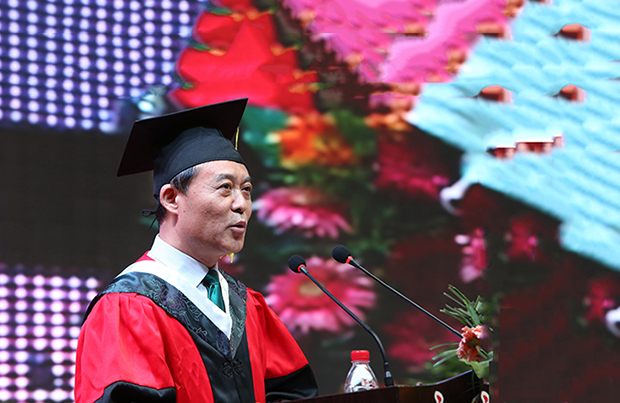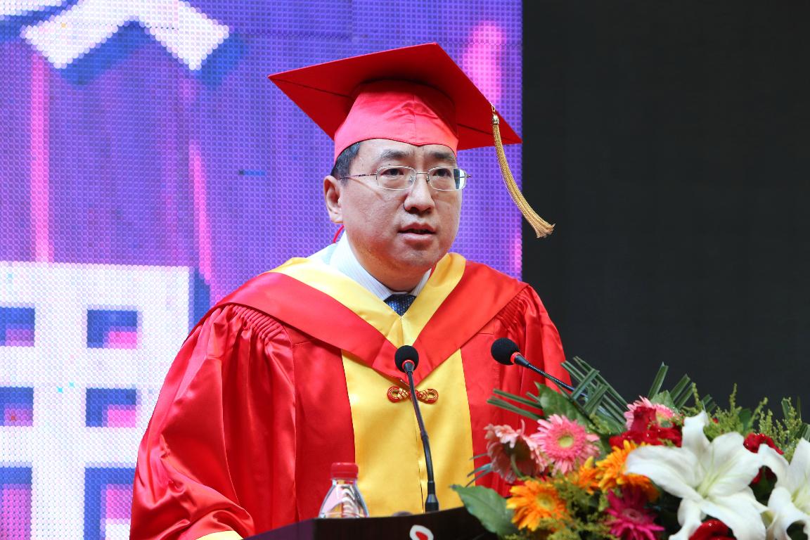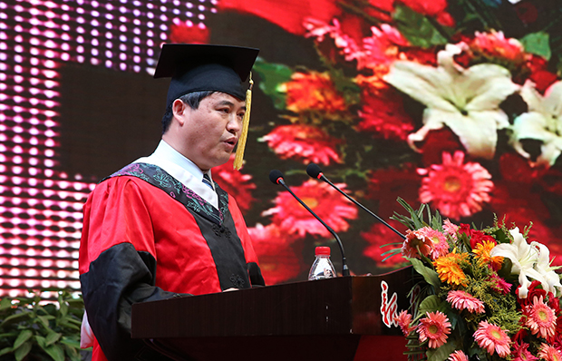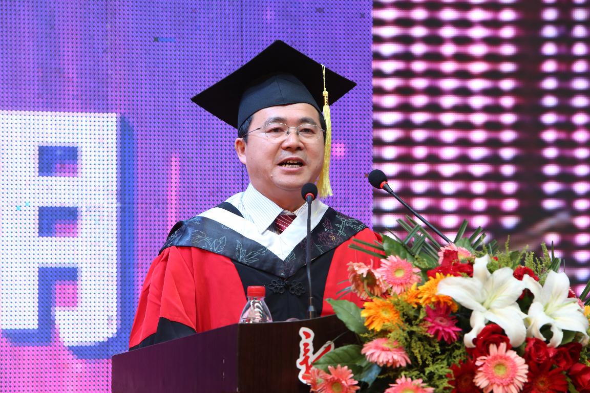 在热烈的掌声中,我校校长、校学位评定委员会主席别荣海发表了热情洋溢的讲话。他引用一则励志小故事勉励在场毕业生:无论什么时候,做任何事情都不要忘记最初时候人的本心,而本心就是人之初与生俱来的善良、真诚、无邪、进取、宽容、博爱。不忘初心,就是要始终坚守理想和信念,不为别人的风向失去自己的标尺;不忘初心,就是要坦诚做人,优雅处事,用温暖睿智的气质期待自己,温暖他人;不忘初心,就是要在平凡的工作岗位上创造不平凡的人生,用爱心温暖患者,用感恩回馈社会,催生社会和谐的新风尚;不忘初心,就是要不断强化教师的责任与担当,努力建设一支与新乡医学院快速发展相适应的高水平师资队伍,着力提升教师的教学科研能力,立德树人,教书育人;不忘初心,就是要始终遵循医学高等教育规律,追踪科技前沿动态,推动人才培养、科学研究、社会服务和文化传承与创新的协调发展。