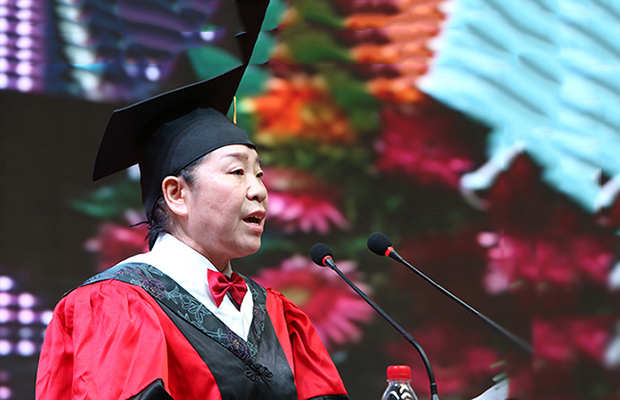 校党委书记段广才教授为获得硕士学位、学士学位的毕业生拨正流苏、颁发学位证书