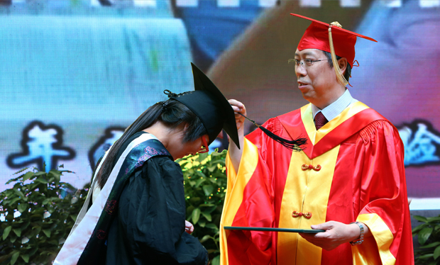 校长别荣海教授为获得硕士学位、学士学位的毕业生拨正流苏、颁发学位证书