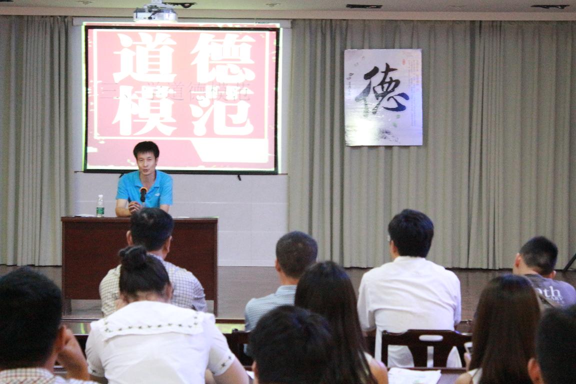 本网讯(图·文/李林)6月23日下午,由校党委宣传部主办、国际教育学院承办的我校第十六期道德讲堂在我校离退休活动中心成功举行。科技处焦石文博士担任主讲,国际教育学院全体教职工和学生代表80余人听讲。