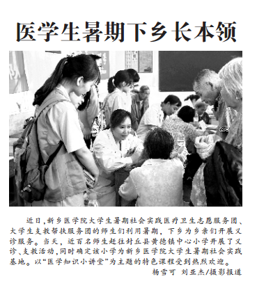 【河南日报·农村版、医药卫生报】报道我校大学生暑期社会实践送医下乡活动