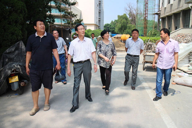 本网讯(图·文/段春宇)7月27日上午,学校副校长张红彦带领相关部门负责人,对正在维修改造的第一、二、三教学楼进行了实地调研。