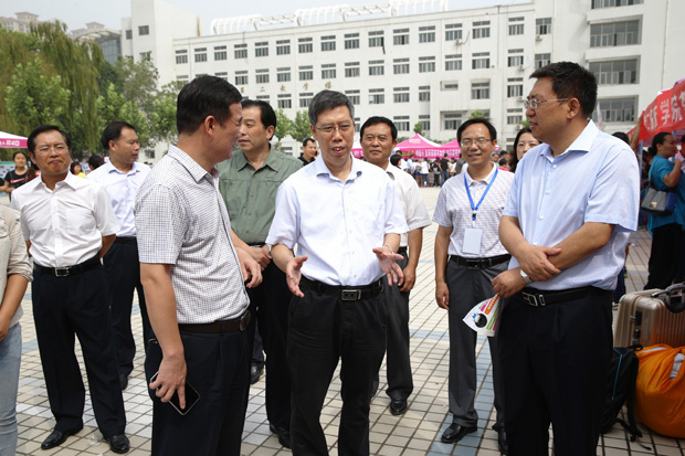 视察中,校党委书记段广才肯定了各院系的迎新工作,并指出新生对学校的第一印象十分重要,各院系的迎新宣传工作要做到整齐统一,展示我校良好的精神风貌和优秀的文化传统。他与前来报到的新生家长亲切交谈,对新生选择来我校就读表示热烈欢迎。