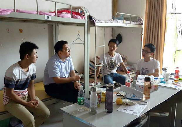 本网讯(图文/薛 宏)9月7日下午,校长别荣海到安排在三全学院综合公寓楼内的2015级学生宿舍看望新生。别荣海走访察看了学生宿舍卫生、安全等方面的情况,并与新生亲切交谈,询问学生对迎新、专业、院系以及住宿、餐饮等方面的意见和建议。别荣海还走访了该楼内的2014级学生宿舍。