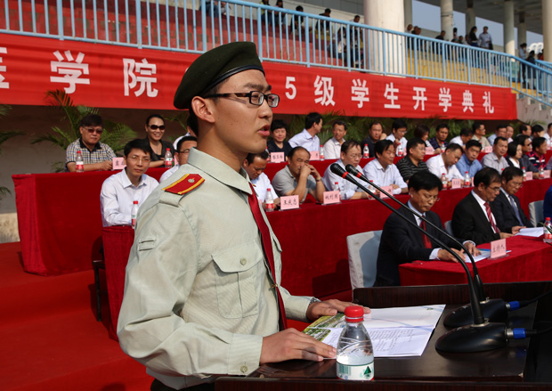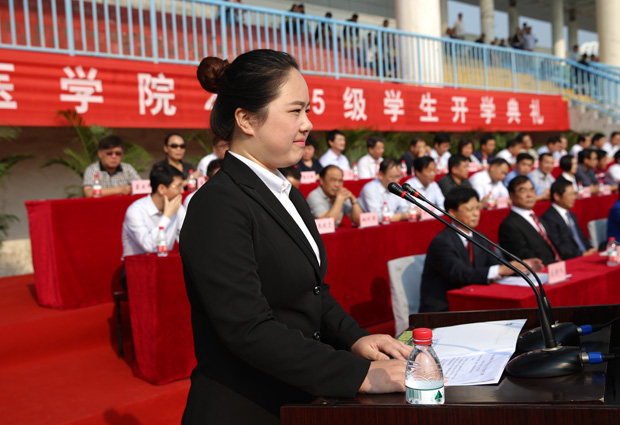 教师代表、第一临床学院心内科主任、博士吕风华教授在发言中表达了作为教师对2015级学生的承诺与期望,高年级学生代表、校学生会主席牛艺园发言分享了自己的学习、生活心得,第三临床学院2015级学生贾爽作为新生代表发言倾诉着自己初来新医的喜悦和对未来美好大学生活的期盼。