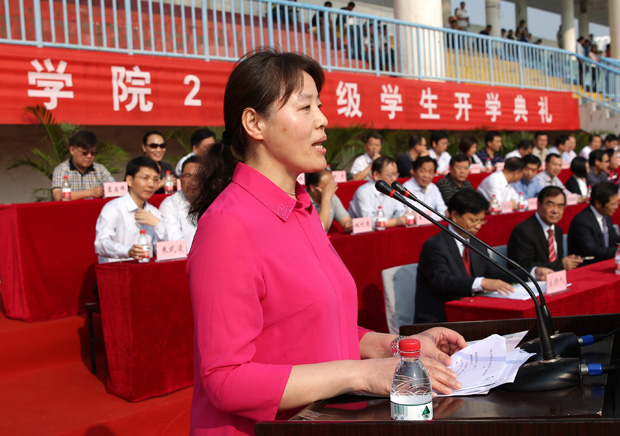 在校学生军乐团演奏的雄壮国歌声中,开学典礼正式开始。副校长郭志坤宣读《关于颁发2015年校长奖学金的决定》。2015年我校招生省内省外生源充足,录取分数再创新高,为表彰优秀新生,鼓励广大学生在校期间刻苦学习,学校坚持优中选优、兼顾公平的原则,评选出72名优秀本科新生为校长奖学金获得者,其中一等校长奖学金7人,每人奖励10000元。与会校领导为“校长奖学金”获奖代表颁发了荣誉证书和奖牌。