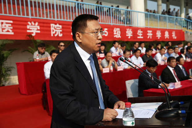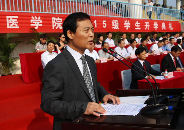 本网讯(文/郜佩常亚婷图/丁毅民孟庆春)新的起点,承载新的梦想;新的希望,共谱新医篇章。9月16日上午,我校在南校区体育场隆重举行2015级学生开学典礼,4465名本科生和259名研究生由此开启人生新的征程。校领导别荣海、郑怀庆、毛兰芝、陈兴华、刘东亮、郭志坤、原志庆、张红彦、张新中出席开学典礼,学校各有关部门、单位和院系部负责人、教师代表、学生代表、2015级辅导员等参加了典礼。开学典礼由校长办公室主任张宝林主持。